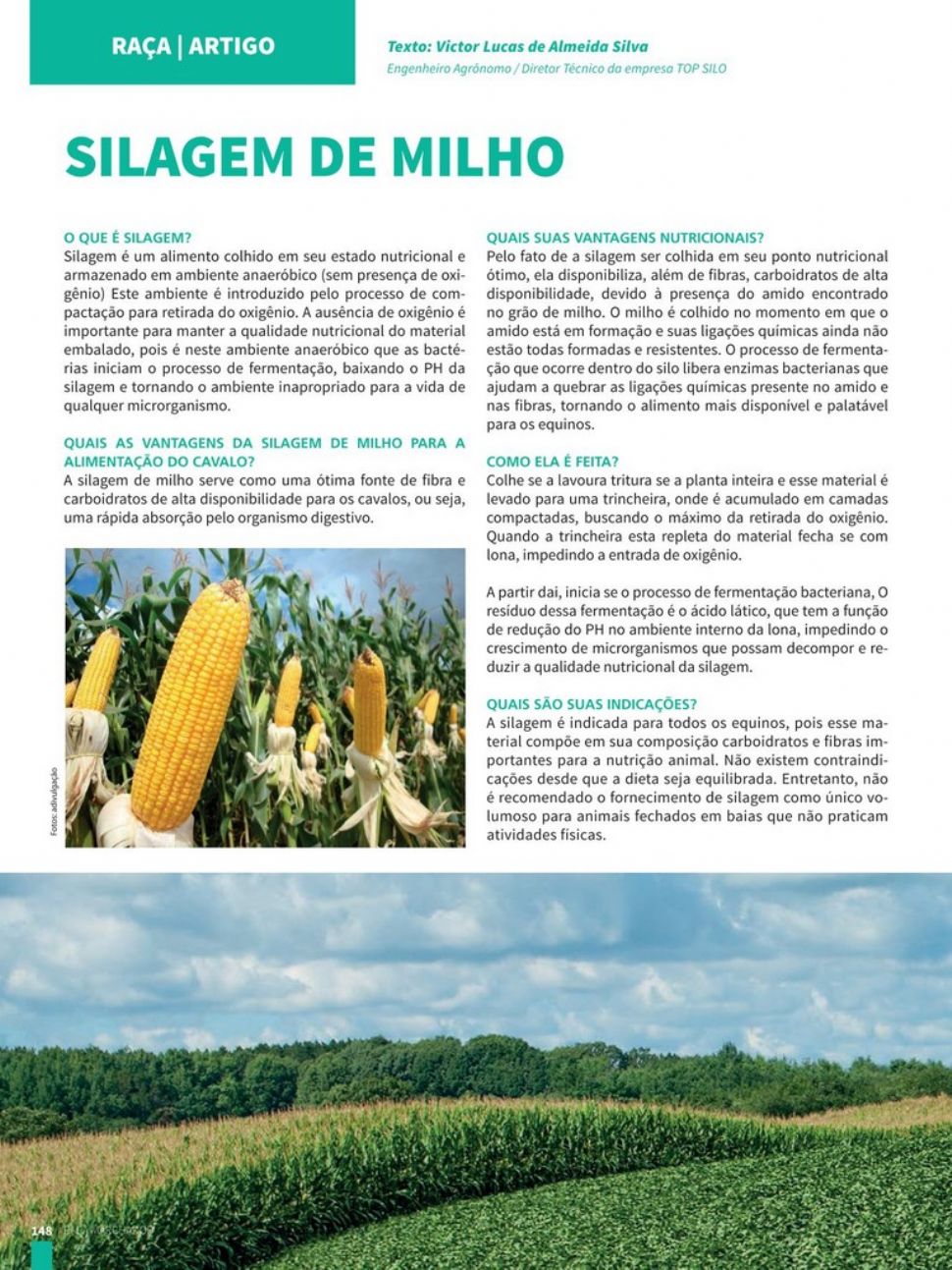 QUAIS AS VANTAGENS DA SILAGEM DE MILHO PARA A ALIMENTAÇÃO DO CAVALO?