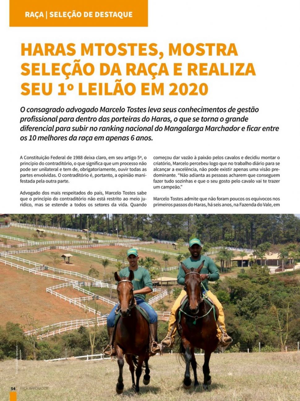 Advogado dos mais respeitados do país, Marcelo Tostes sabe que o princípio do contraditório não está restrito ao meio jurídico, mas se estende a todos os setores da vida. Quando começou dar vazão à paixão pelos cavalos e decidiu montar o criatório, Marcelo percebeu logo que no trabalho diário para se alcançar a excelência, não pode existir apenas uma visão predominante. “Não adianta as pessoas acharem que conseguem fazer tudo sozinhas e que o seu gosto pelo cavalo vai te trazer um campeão.”