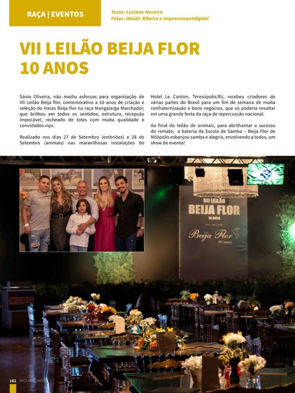 Sávio Oliveira, não mediu esforços para organização do VII Leilão Beija flor, comemorativo a 10 anos de criação e seleção do Haras Beija flor na raça Mangalarga Marchador, que brilhou em todos os sentidos; estrutura, recepção impecável, recheado de lotes com muita qualidade e convidados vips.