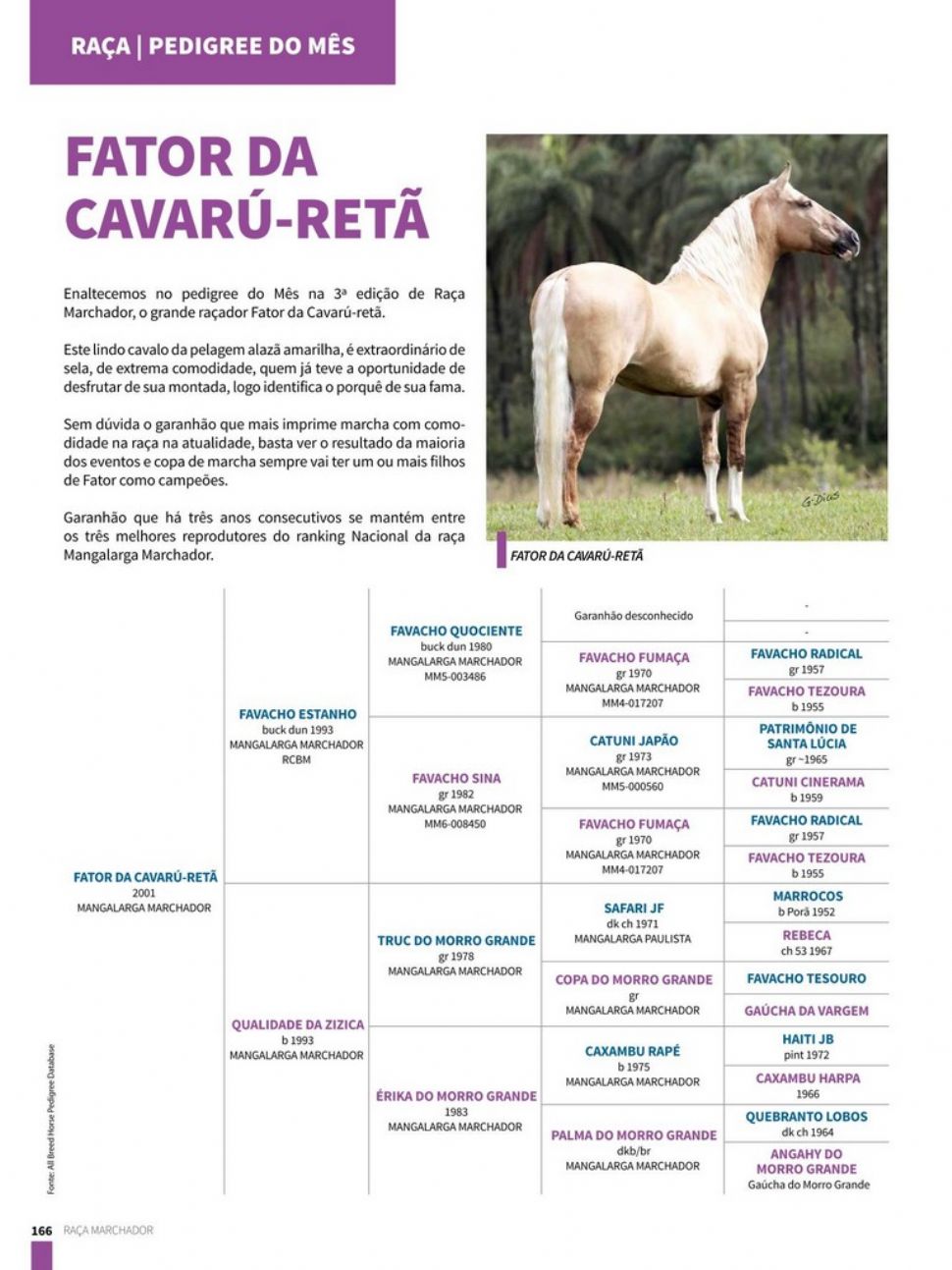 Enaltecemos no pedigree do Mês na 3ª edição de Raça Marchador, o grande raçador Fator da Cavarú-retã.